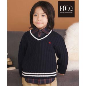 ニット セーター 「POLO BCS(ポロ・ビーシーエス)×SLAP SLIPコラボ」襟ライン入りVネックトラッドニットプルオーバー(80~130cm