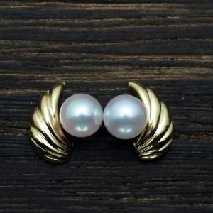 K18YG/K14WG 全2色 アコヤ本真珠 リーフ ピアス あこやパール イエローゴールド/ホワイトゴールド 大ぶり 大きめ 個性的 ギフト プレゼント 日本製