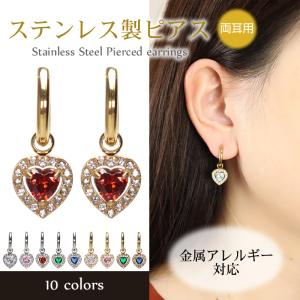 ピアス ハート キュービックジルコニア フープピアス 金属アレルギー対応 ステンレス製 両耳用 中折れ式 ワンタッチ シルバー ゴールド サークル 小ぶり