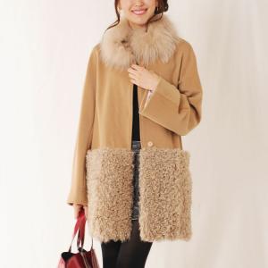 カシミヤ混&カルガンラムコート リアルファー衿付き 毛皮コート