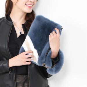 レッキス ファー クラッチ レトロブルー/ダークグリーン レディース 秋冬 リアルファー ファーバッグ セカンドバッグ ファーポーチ (No.01000847r)