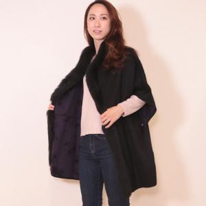 カシミヤ 100% ケープ ジャケット フォックス ファー トリミング 一枚仕立て 毛皮 レディース ブラック (4500-920r)