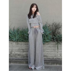 パンツ クラッシュベロアドロストワイドパンツ レディース