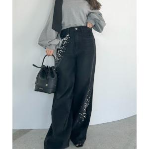 ジーンズ デニム デニムパンツ ハイウエストビジューデニム レディース