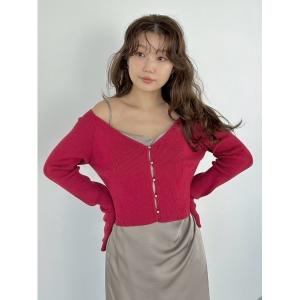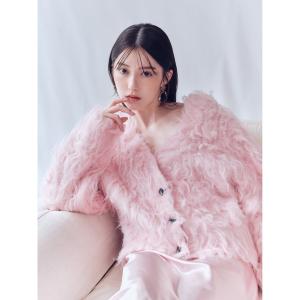 カーディガン パールリボンシャギーミドルVネックカーディガン レディース