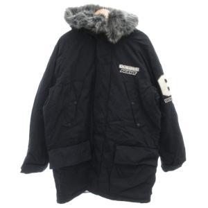 ダブルエージェント DOUBLE AGWNT 中綿フーデットコート ロング フェイクファー付 ロゴ XL 黒 ブラック /GV メンズ
