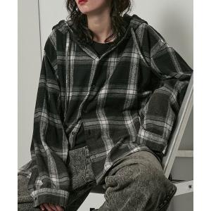 シャツ 「Alfred Alex」グラデーション チェック フードシャツ メンズ レディース