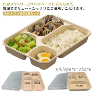 使い捨て弁当箱 透明蓋 セット 50枚 3つ仕切 4つ仕切 テイクアウト 容器 レンジOK 紙容器 紙バック フードパック デリバリー イベント 業務