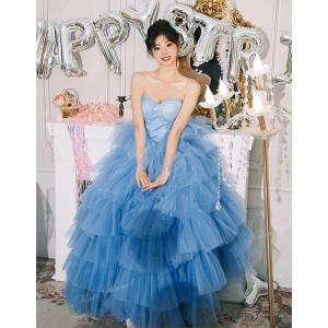 カラードレス プリンセス ブルー ベアトップ ウェディングドレス ウエディングドレス ブライダル 演奏会 結婚式 二次会 演奏会 パーティードレス
