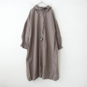 モトミ motomi.m *リネンフリルカラーワンピース*ドレス麻ブラウン茶フロントボタン羽織りワイドゆったり(1-2509-597)【10K52】