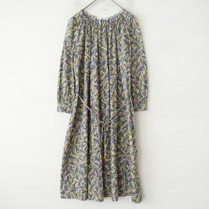 【定価6.0万】ミナペルホネン mina perhonen *light stickプリントネックギャザーワンピース*36綿腰紐付き(2-2510-28)【03J52】