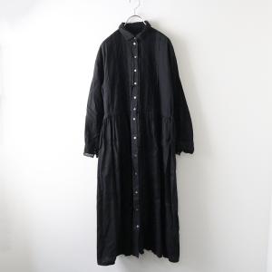 【2023】ネストローブ nest Robe *コットンラミーBIGポケットシャツワンピース*F墨黒バルーンスリーブ羽織(2-2509-396)【12J52】