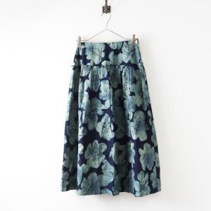 2022SS 夏のよそおい パラスパレス Pal'las Palace 和芍薬柄 インディゴ 抜染 タック スカート 0|ネイビー フレア 藍染【2400014678796】
