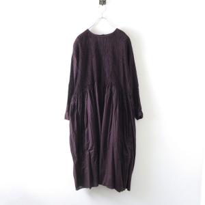 美品 メゾンドソイル maison de soil ストライプピンタックギャザーワンピース 2\ダークパープル ドレス フレア【2400014679724】