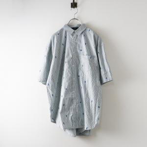 美品 2025MS 今季 マーブルシュッド marble SUD neu EMB rakkasei BIG シャツ‖ホワイト×グリーン 刺繍 ストライプ【2400014681987】