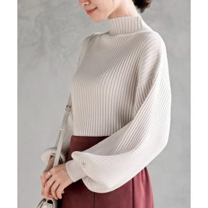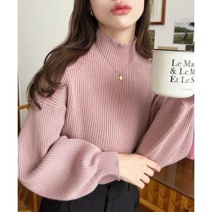 ニット セーター ボリューム袖ボトルネックリブニットプルオーバー レディース