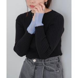 ニット セーター 「ボトルネック/ラウンドネックから選べる」「20パターン」シアー使い 配色リブニットトップス レディース