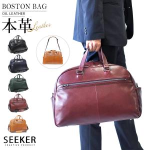 SEEKER ボストンバッグ メンズ 本革 2way 大容量 出張 旅行 ゴルフ 通勤 バッグ 軽量 ジム スポーツ ショルダー 底鋲 人気 大人 2泊 3泊