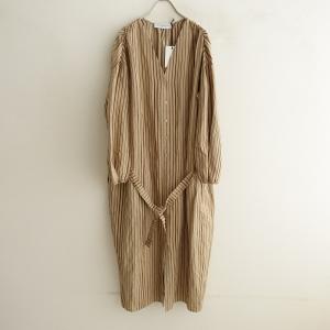 //【美品/定価2.7万】ミルコベルトラ MIRKO BERTOLA *ストライプワンピース*FVネックシャツベージュ長袖(33-2402-689)【02C42】