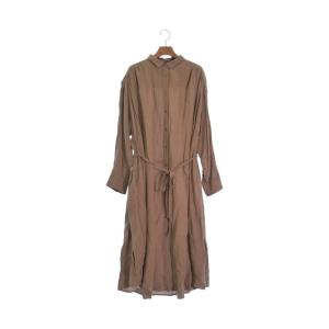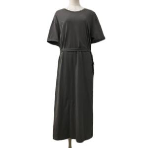 ミルコベルトラ MIRKO BERTOLA ワンピース Iライン ロング 無地 スリット リボン 半袖 40 グレー 茶 ブラウン レディース