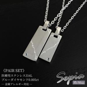 ペアネックレス ステンレス 刻印無料 ダイヤモンド 大人 シンプル おしゃれ 金属アレルギー対応 スティック プレート 2本セット 安い