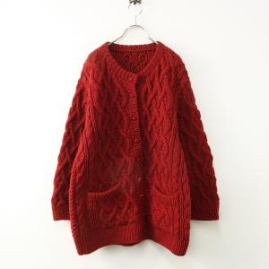 2022AW ネストローブ nest Robe ペルーハンドニットケーブルカーディガン F‖レッド トップス 羽織り ざっくり【2400014872309】