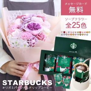 夏ギフト お供え 誕生日 プレゼント セット スタバ スターバックス ドリップ コーヒー ソープフラワー ギフト 花 ソープフラワーギフト 花束 結婚祝い 退職祝い