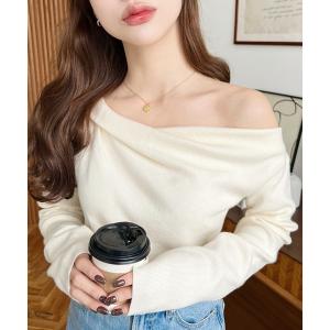 ニット セーター 12Gワンショルドレープリブニットプルオーバー(ワンショルニット ドレープニット) レディース