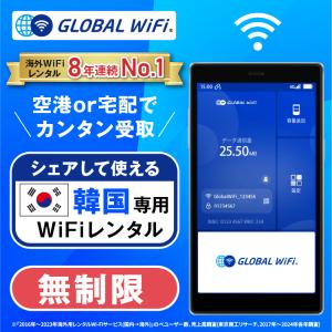 韓国 WiFi レンタル データ無制限 1日1,100円 4G LTE 海外 WiFi ルーター wi-fi ポケットwifi ワイファイ globalwifi グローバルwifi 1日間 2日間 3日間〜