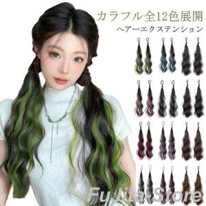 エクステ カラフル全12色展開 ポニーテール ウェーブ グラデーション ヘアーエクステンション ヘアゴム 付け毛 カラフル メッシュ つけ毛 派手 ツ