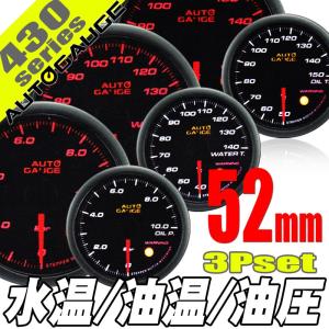 オートゲージ 水温計 油温計 油圧計 52Φ 3連メーター 430 3点セット 日本製モーター ワーニング セレモニー 52mm 430AUTO52A3SET