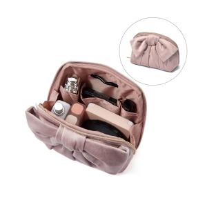 ポーチ ベロアリボン ポーチ S ピンク ポケット付き 化粧ポーチ コスメ収納 コンパクト レディース