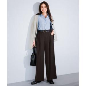 UNFILO L 【洗える/シワになりにくい】マイビューティ タックワイドパンツ (ブラウン)