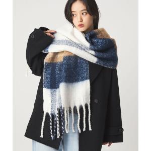 マフラー ストール ボリュームフリンジブロックチェックマフラー/ボリュームフリンジマフラー レディース メンズ