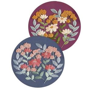 ママゆるり 刺繍キット 花 和モダン 2個セット 日本語取り扱い説明書 ステッチ説明付 初心者向け 簡単 刺繍糸 刺繍枠 図案クロス付 (和