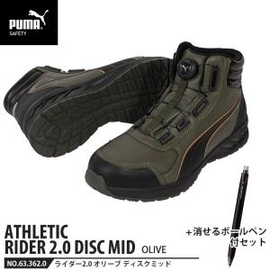 安全靴 ライダー2.0 オリーブ 27.0cm ディスク ミッドカット 消せるボールペン付 PUMA(プーマ) 63.362.0