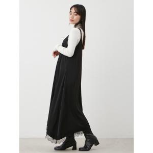 ワンピース サテンレーストリミングナローキャミワンピース