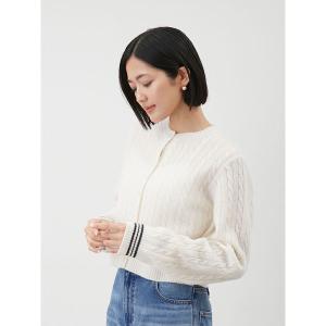 カーディガン カシミヤタッチ配色ケーブルニットカーディガン レディース