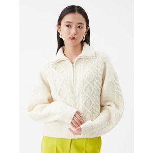 ニット セーター アランブークレーハーフジップニットプルオーバー レディース