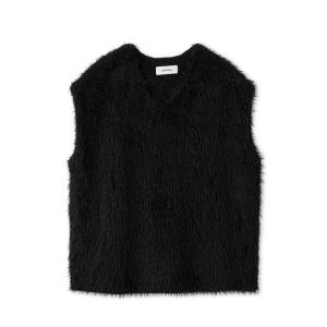 ベスト ジレ Vネックシャギーニットベスト レディース