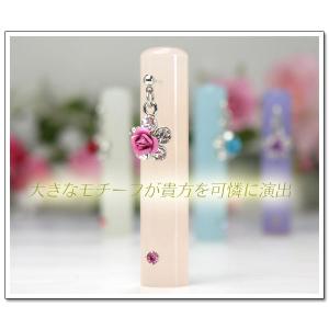 印鑑 はんこ 銀行印 認印 印鑑 ハンコ 実印 印鑑ケース付き ダイヤモンドローズ ピンク 12mm×60mm からふる屋