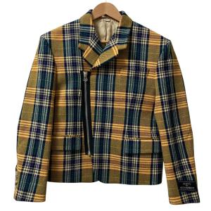 美品 GUCCI グッチ METAMORFOSI メタモルフォシス チェック ライダースデザイン テーラードジャケット サイズ46 イエロー グリーン メンズ 古着 中古