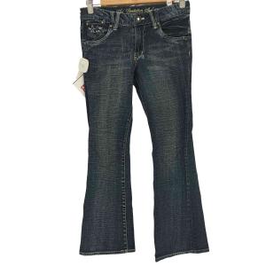 USED古着(ユーズドフルギ) Y2K ケミカルブリーチ オーバーダイ ラインストーン フレアデニム レデ 中古 古着 0544