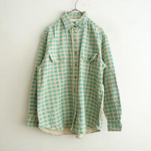 アンユーズド UNUSED *チェックコーデュロイシャツ*0コットン長袖ロングスリーブ総柄ベージュ緑グリーン(85-2512-5)【12A62】