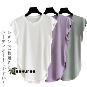 丸み裾 トップス レディース ヨガウェア 半袖 通気Tシャツ サイドスリット ピラティス ゆったり サイドスリット 半袖 おしゃれ 速乾 スポーツウェ