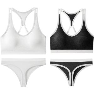 スポーツブラ 上下 セット セクシー Tバック フリーサイズ 2枚 ノンワイヤー F(ホワイトチャコールグレー,  Free Size) スポーツブラ 上下 セット セクシー Tバック フリーサイズ 2枚 ノンワイヤー F(ホワイトチャコールグレー,  Free Size)2,880円 送料無料
