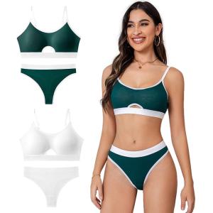 Tバック セクシー 下着 レディース 上下 セット ノンワイヤー キーホール フリーサイズ(ホワイトグリーン,  Free Size) Tバック セクシー 下着 レディース 上下 セット ノンワイヤー キーホール フリーサイズ(ホワイトグリーン,  Free Size)3,480円 送料無料