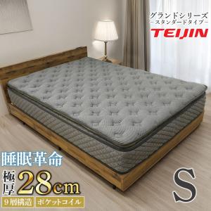 高級マットレス シングル グランドシリーズ スタンダードタイプ 厚さ28cm ポケットコイル TEIJIN ピロートップ 圧縮梱包 マットレス 寝具 グレー