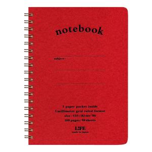 ライフ ノート ポケット付 方眼 赤 B6 N191C