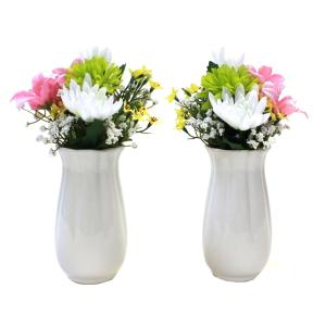 造花 仏花 マムとリリーの小花束一対 (花器付きセット小) 仏壇用 小さめ シルクフラワー CT触媒 お盆 お供え btb
